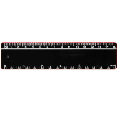 Линейка из твердой пластмассы с разметкой и в сантиметрах, и в дюймах.