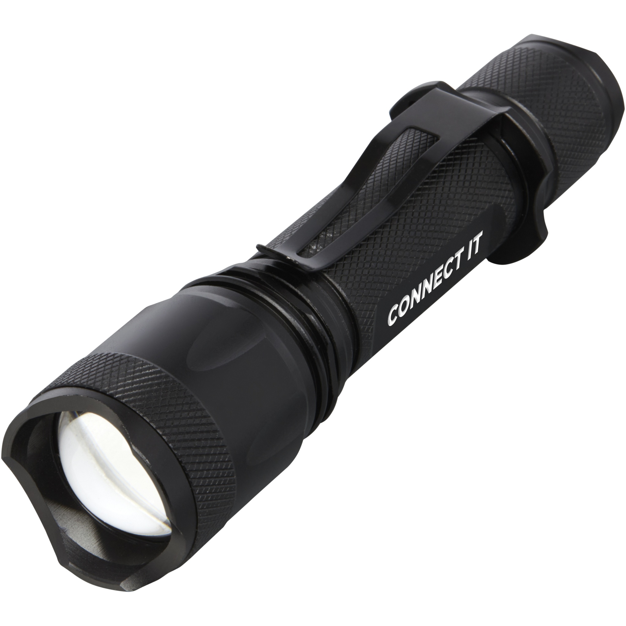 Благодаря этому перезаряжаемому мощному тактическому фонарю с алюминиевой конструкцией ваш аккумулятор никогда не разрядится. Прочный черный корпус из алюминиевого сплава выглядит по-военному и имеет ударопрочность до 1 метра. Фонарь имеет зажим для крепления на ремне и защиту от брызг по классу IPX4. Светодиод мощностью 5 Вт генерирует 300 люмен в течение 3 часов и луч дальностью 200 метров с 5 различными режимами освещения: высокий, средний, низкий, стробирующий и SOS. Высокая мощность обеспечивается встроенным литиевым аккумулятором емкостью 2000 мАч. Фонарь имеет размеры 14,5 x 3,4 см и весит всего 170 граммов. Поставляется с инструкцией по эксплуатации в подарочной коробке из переработанного картона размером 17,5 x 6 x 4 см. Рекомендуется нанесение на алюминиевый корпус лазерной гравировки.