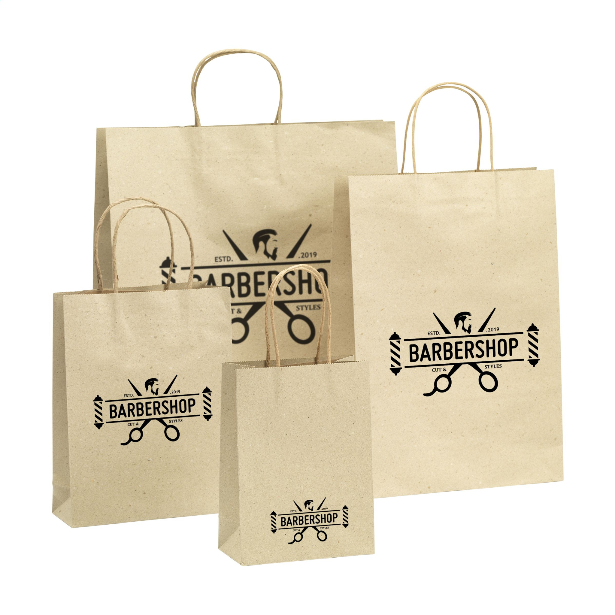 WoW! Прочный подарочный пакет из ЭКО-бумаги (размер S) из переработанной травяной бумаги (120 г/м²). Благодаря использованию натуральных материалов неровности бумаги можно увидеть и/или почувствовать. Это придает изделию красивый естественный вид. Пакет имеет две короткие петли для переноски бумаги, сложенное дно и боковую складку. Для производства этого пакета не вырубаются деревья.