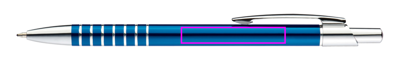 Тонкая металлическая шариковая ручка с синим стержнем и гравированной зоной захвата. Мы гравируем ваш логотип под зажимом.