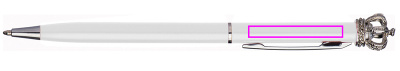 Тонкая шариковая ручка из металла с синим стержнем. Корона и маленький стеклянный бриллиант делают эту ручку уникальной. Мы гравируем ваш логотип справа от зажима.