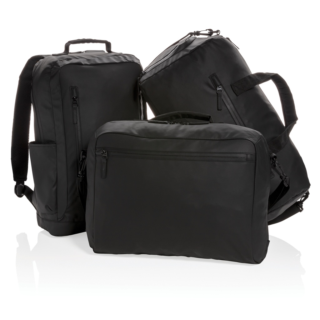 Будьте стильными и непринужденными, носите с собой эту полностью черную сумку для ноутбука из полиуретана. В этой сумке есть отделение для всех необходимых вещей и отделение для ноутбука с диагональю 15,6 дюйма. Не содержит ПВХ.