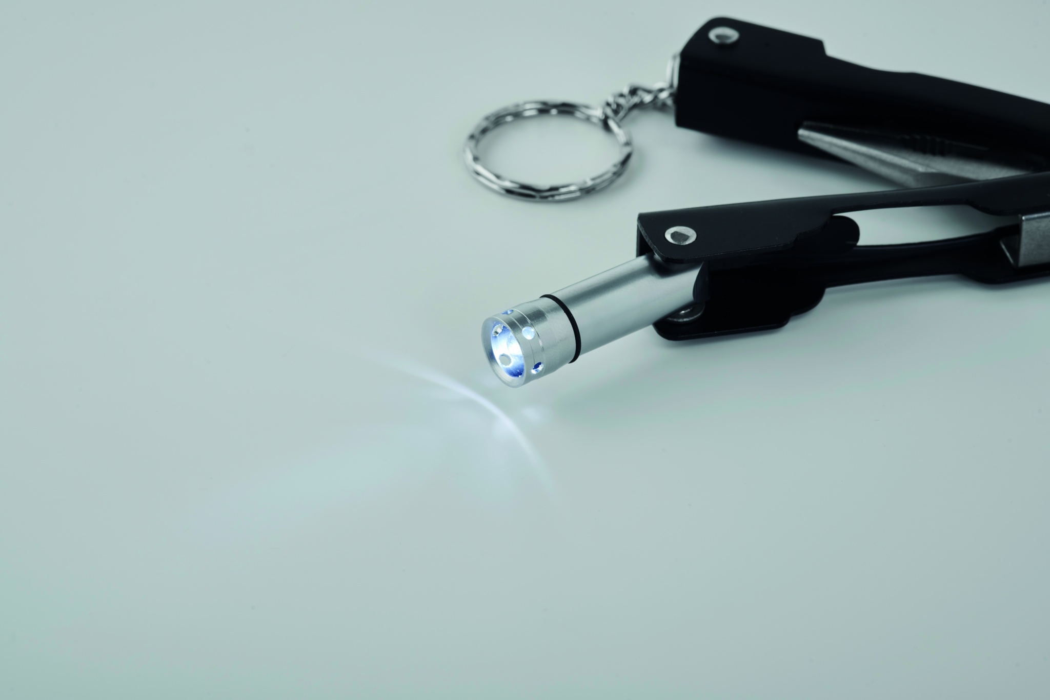 Складной мультитул с фонариком из нержавеющей стали. Включает 10 функций, а также чехол из полиэстера 600D. В комплекте 3 батарейки AG3.