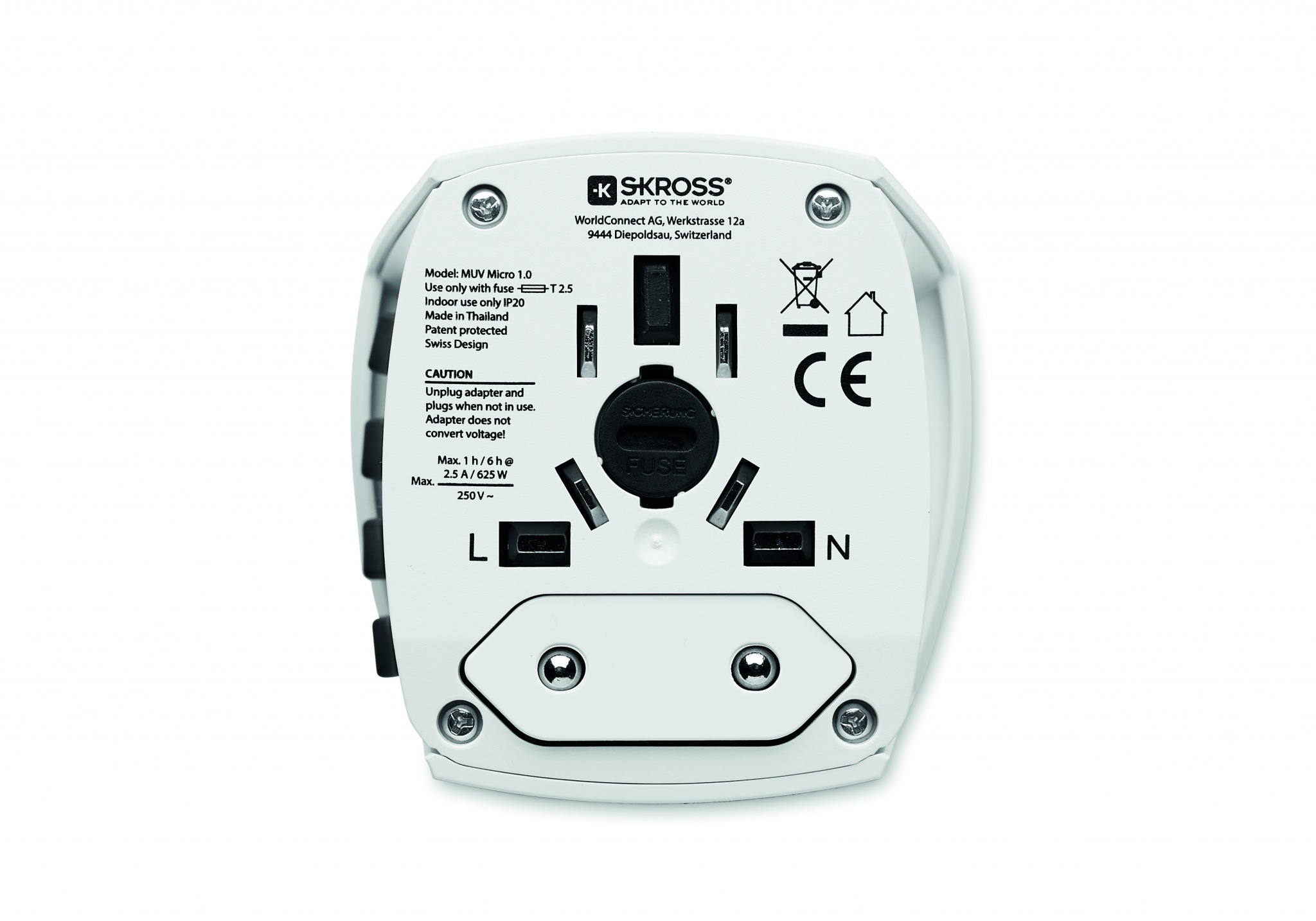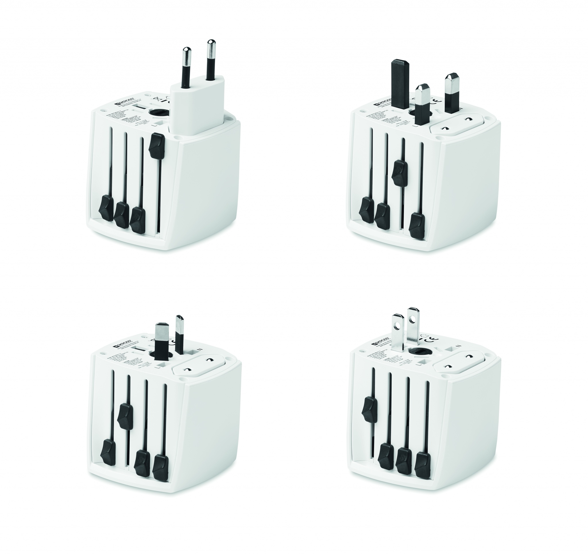Универсальный дорожный адаптер с 2 вилками. Работает в Европе, США/Японии, Австралии/Китае. Соответствует всем международным нормам и стандартам безопасности. Безопасен даже для детей.
