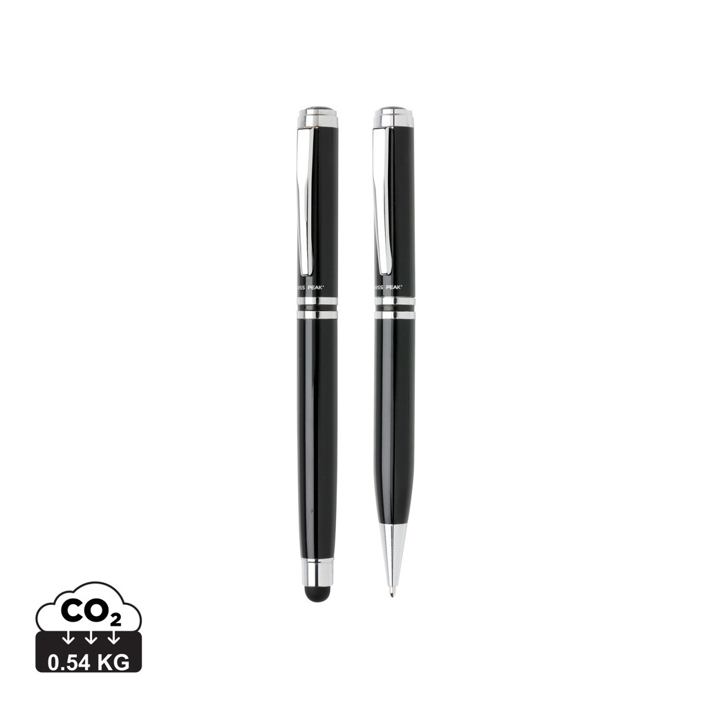 Аутентичный набор ручек, обладающий всеми признаками классического качества. Высококачественная тяжелая латунная металлическая ручка-роллер со стилусом и шариковая ручка с брендингом Swiss Peak. Включает премиальный чехол из искусственной кожи и подарочную коробку. Синие чернила.