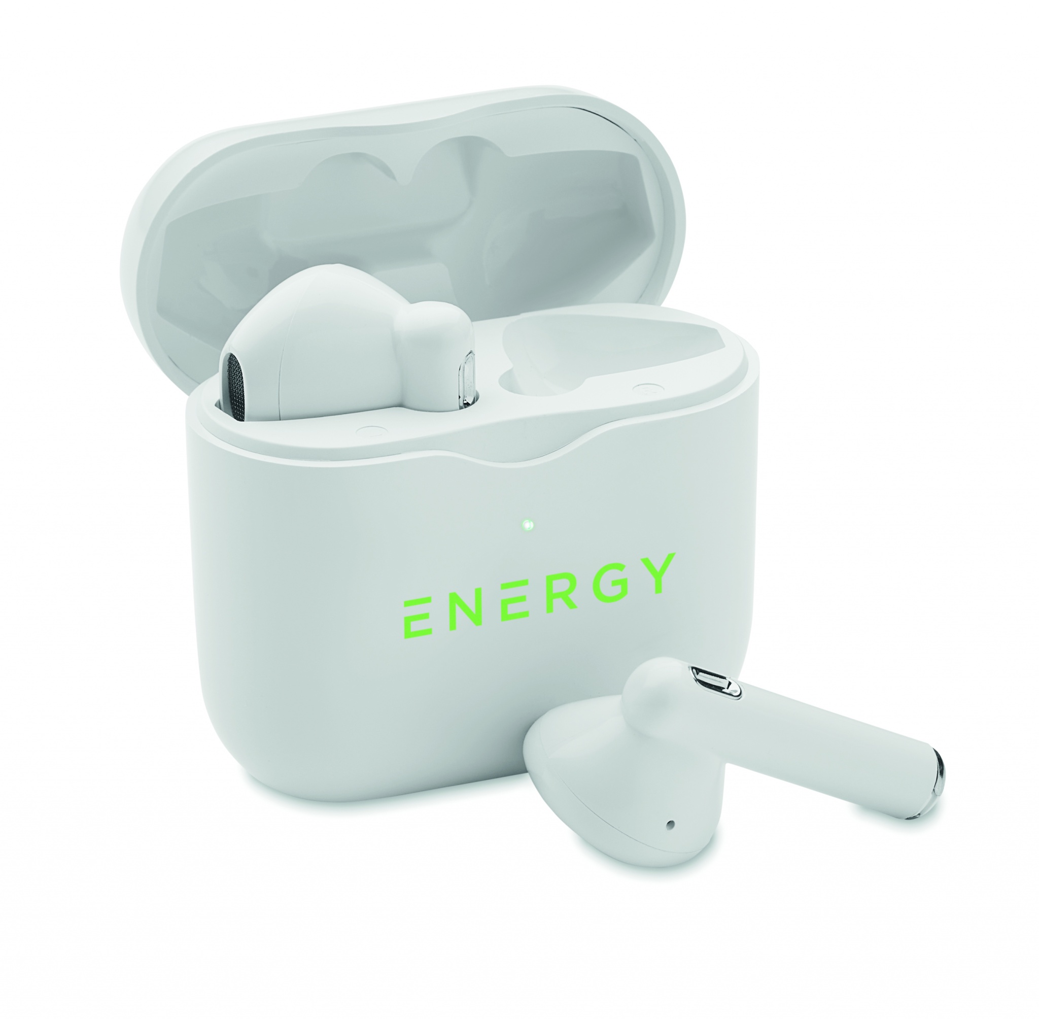 Беспроводные пластиковые стереонаушники (TWS) 5.3 с микрофоном, встроенным аккумулятором емкостью 30 мАч и зарядным блоком емкостью 200 мАч. Время воспроизведения около 4 часов. Автосопряжение.
