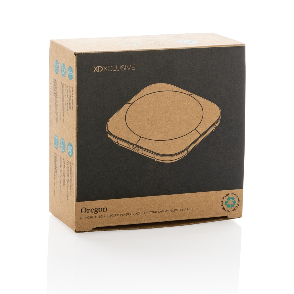 Лого трейд бизнес-подарки фото: Oregon RCS переработанный пластик и пробка 10 Вт беспроводной