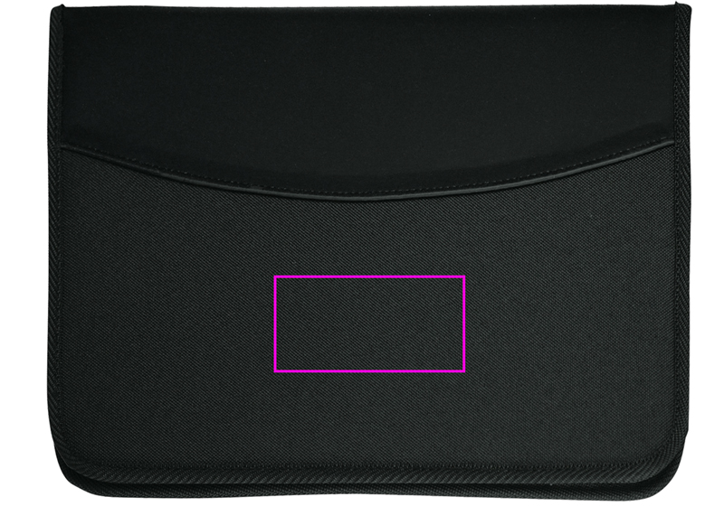 Портфель из прочного полиэстера 600D; с различными отделениями, молнией 270° и нейтральным блокнотом (40 страниц). Мы напечатаем ваш логотип на мягкой кромке из полиуретана.