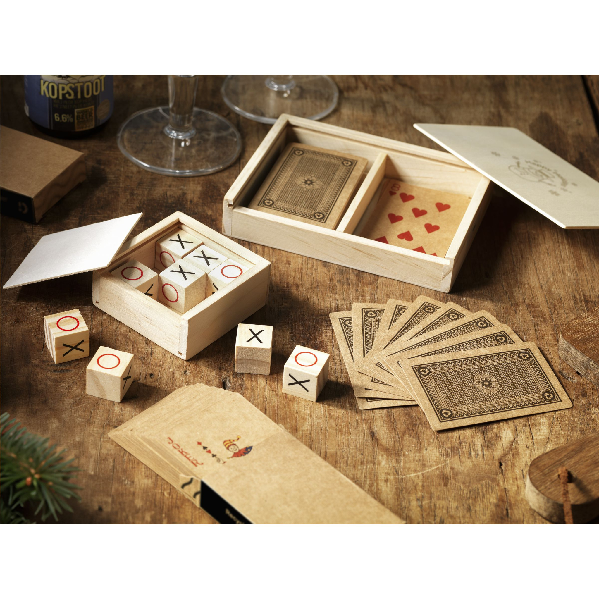 WoW! Две колоды игральных карт, изготовленные из высококачественной переработанной крафт-бумаги (250 г/м²). Эта игра состоит из 52 игральных карт и 2 джокеров. Хранится в коробке из переработанного картона. На обороте всех этих карт одно и то же стандартное изображение. Эти колоды карт поставляются в коробке для хранения из сосны с выдвижной крышкой. - Этот продукт напечатан со стандартным рождественским дизайном. Выбор из 6 различных дизайнов, как показано на изображениях. Невозможно настроить дизайн.