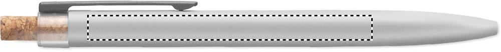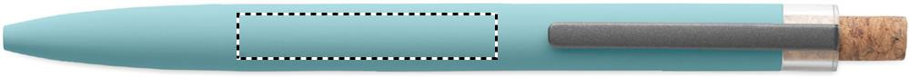 Push ball pen in recycled aluminium with cork detail button and metal clip. Blue ink.