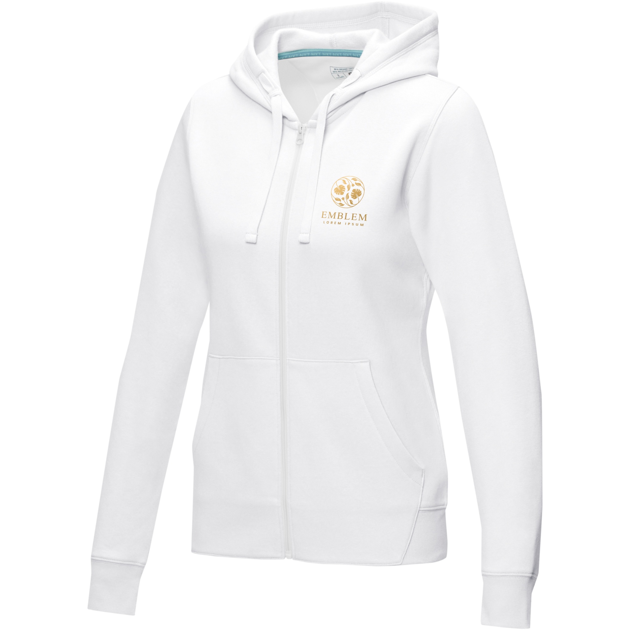 Ruby women’s organic recycled full zip hoodie, Белый