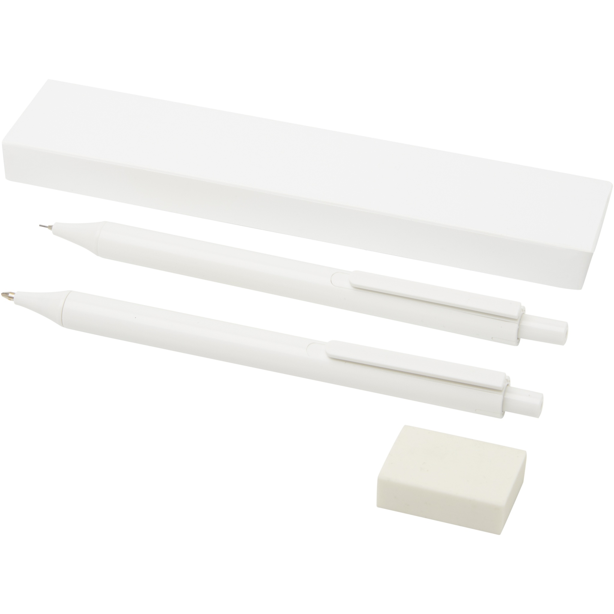 Комплект антибактериальных канцелярских принадлежностей, состоящий из шариковой ручки с нажимным механизмом, механического карандаша и ластика. Нанопорошковая добавка уменьшает рост микроорганизмов на поверхности ручек.