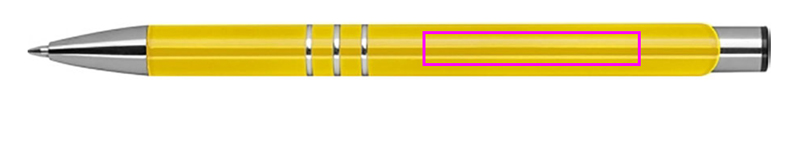 Полностью лакированная металлическая шариковая ручка с 3 декоративными кольцами и синим стержнем большой емкости. Ваш логотип будет выгравирован справа от зажима.