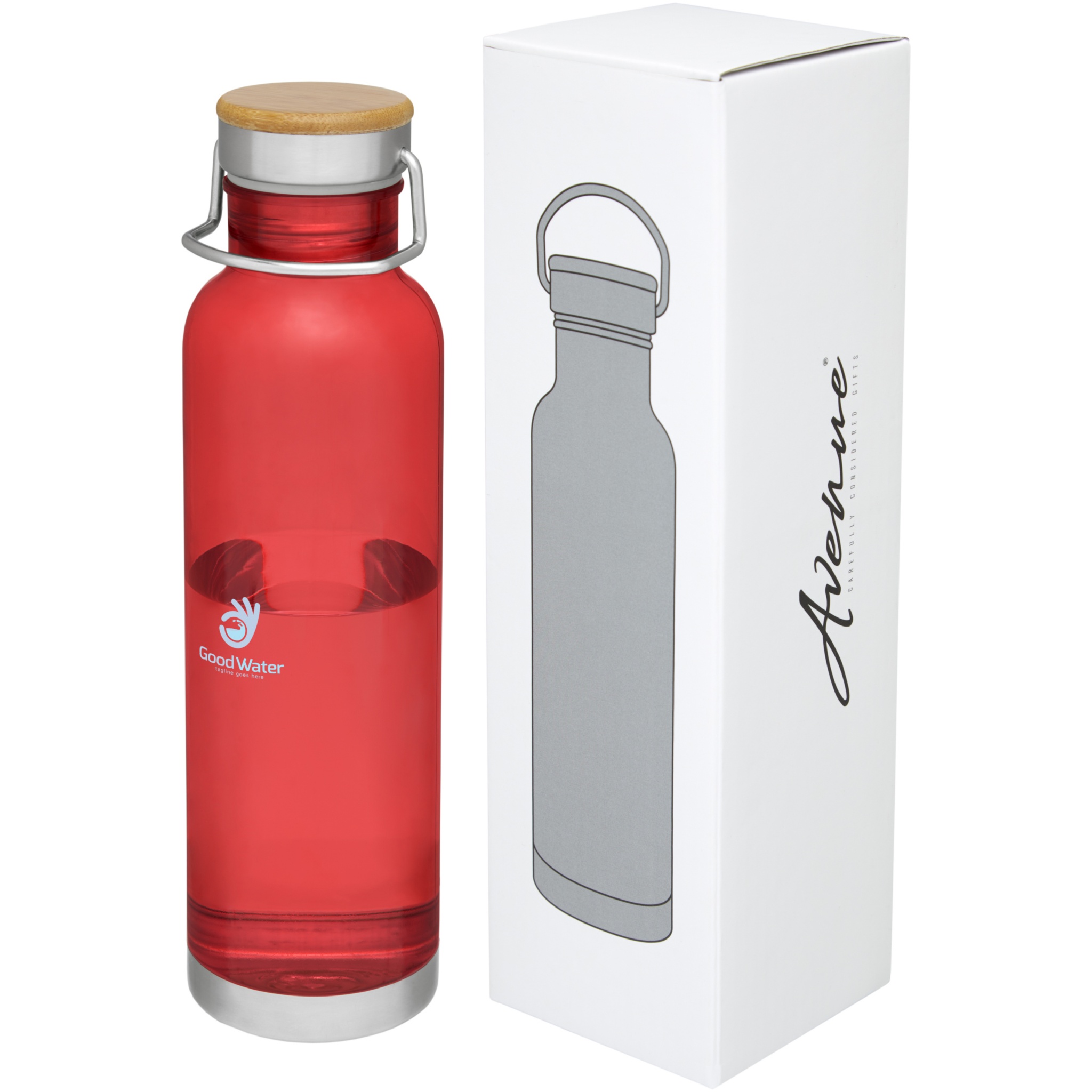 Спортивная бутылка с одинарными стенками из прочного материала от Tritan™. Устойчива к ударам, не пачкается и не пропускает запахи. Имеет съемную крышку с бамбуковым колпачком и ручку для удобной переноски. Без содержания БФА. Объем 800 мл. Представлена в подарочной коробке Avenue.