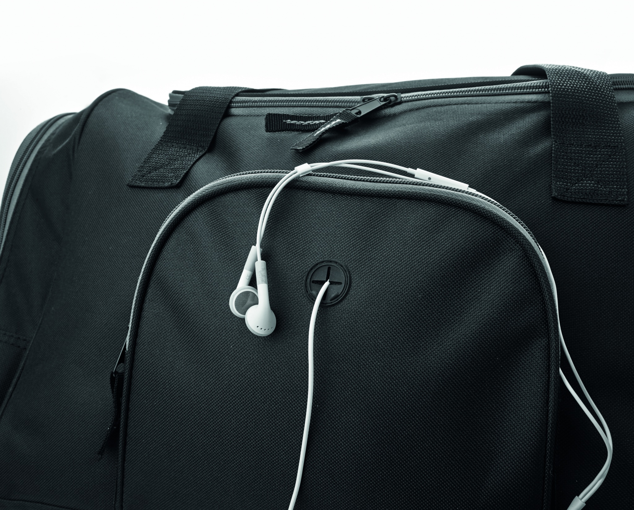 Сумка дорожная/спортивная из полиэстера 600D с 2 боковыми карманами, закрывающимися на молнию, и одним карманом для наушников. Съемный регулируемый наплечный ремень в комплекте.