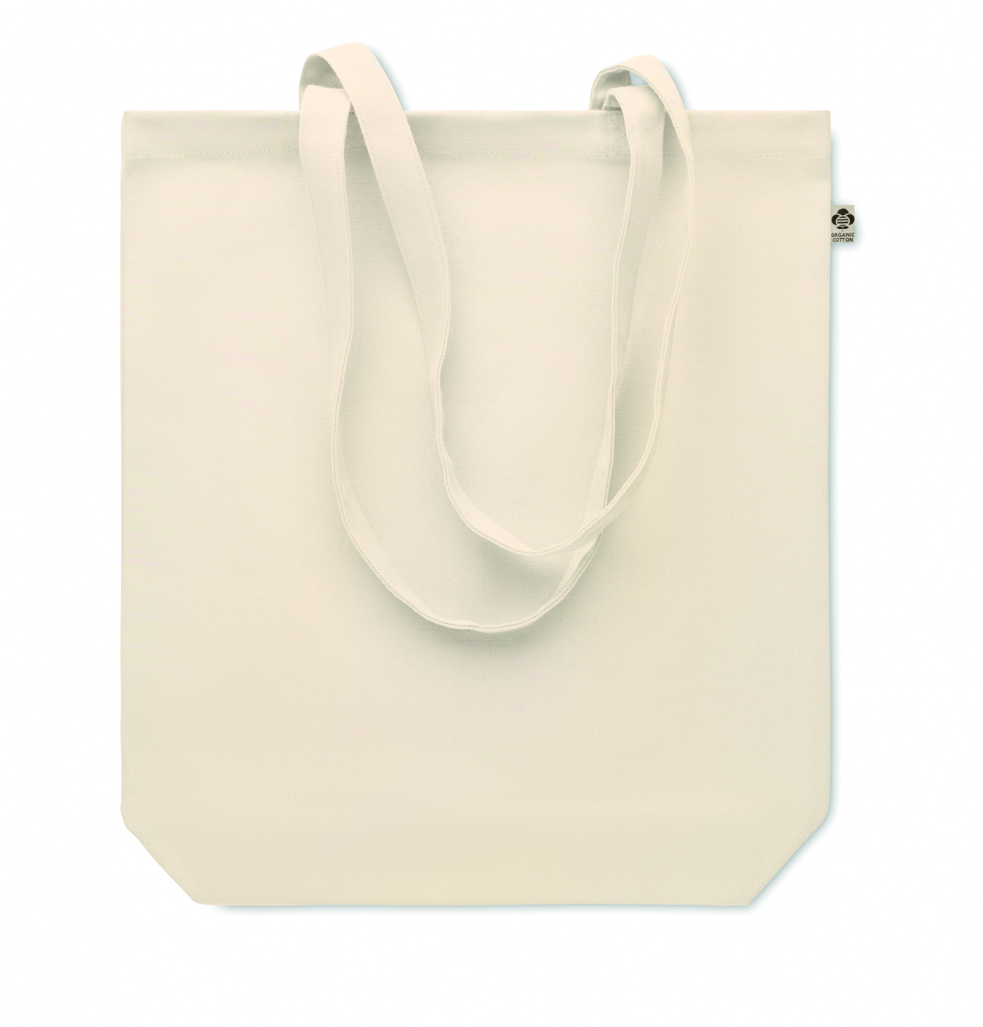 Сумка для покупок из органического хлопка с длинными ручками и ластовицей на дне. 270 гр/м².
