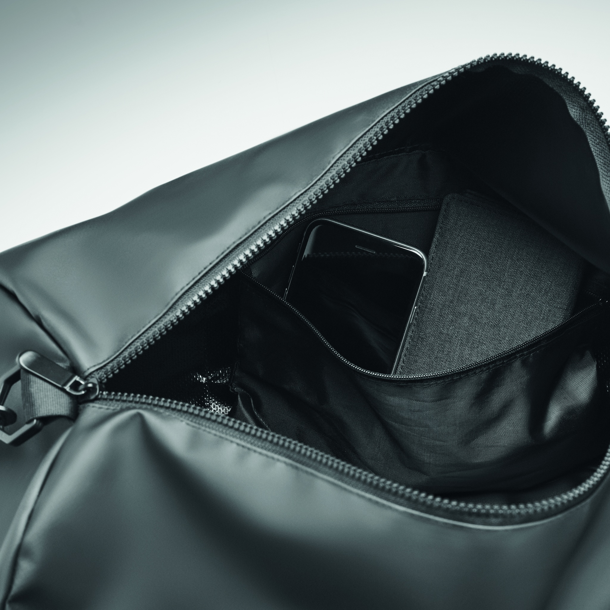 Сумка спортивная или дорожная из брезента 50C с боковым отделением на молнии и внутренним карманом на молнии. Имеет удобную ручку и мягкое дно.