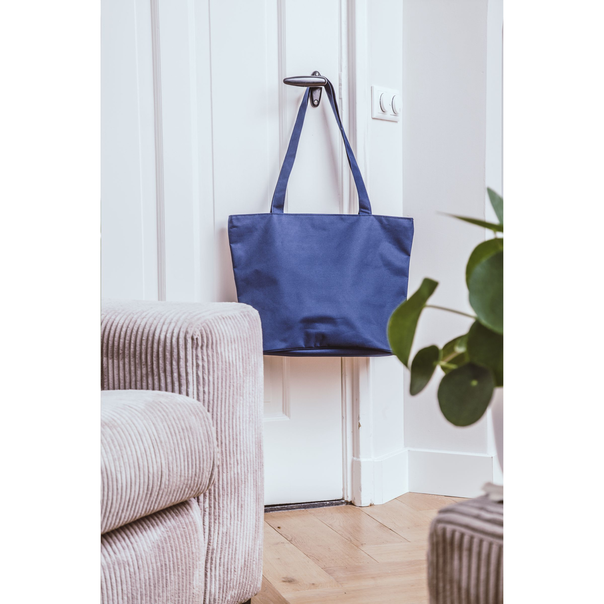 Красивая, прочная сумка из полиэстера 600D с укрепленной внутренней частью, длинными ручками, молнией и карманом для хранения на молнии. Широкое дно имеет красивую и гладкую отделку с круглым кантом. Многоцелевое использование в качестве сумки для шоппинга, сумки для покупок и пляжной сумки.