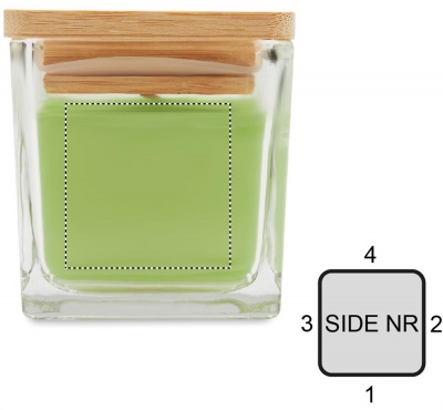 Ароматизированная восковая свеча на растительной основе в квадратном стеклянном стакане с бамбуковой крышкой. 50 гр. Время горения: 8 часов.