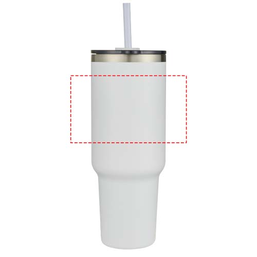 Кружка с двойными стенками из меди, сертифицированной RCS, и вакуумной изоляцией, изготовлена из нержавеющей стали, 91% которой подверглось вторичной переработке, сохраняет напитки холодными в течение как минимум 24 часов. Имеет соломинку Tritan и функцию слайдера крышки для предотвращения проливания. Прижимная поворотная крышка из 100% переработанного пластика надежно удерживает соломинку на месте и может легко поворачиваться, открывая отверстие для напитка. Прочное внешнее порошковое покрытие. Объем: 1200 мл. Только ручная мойка.