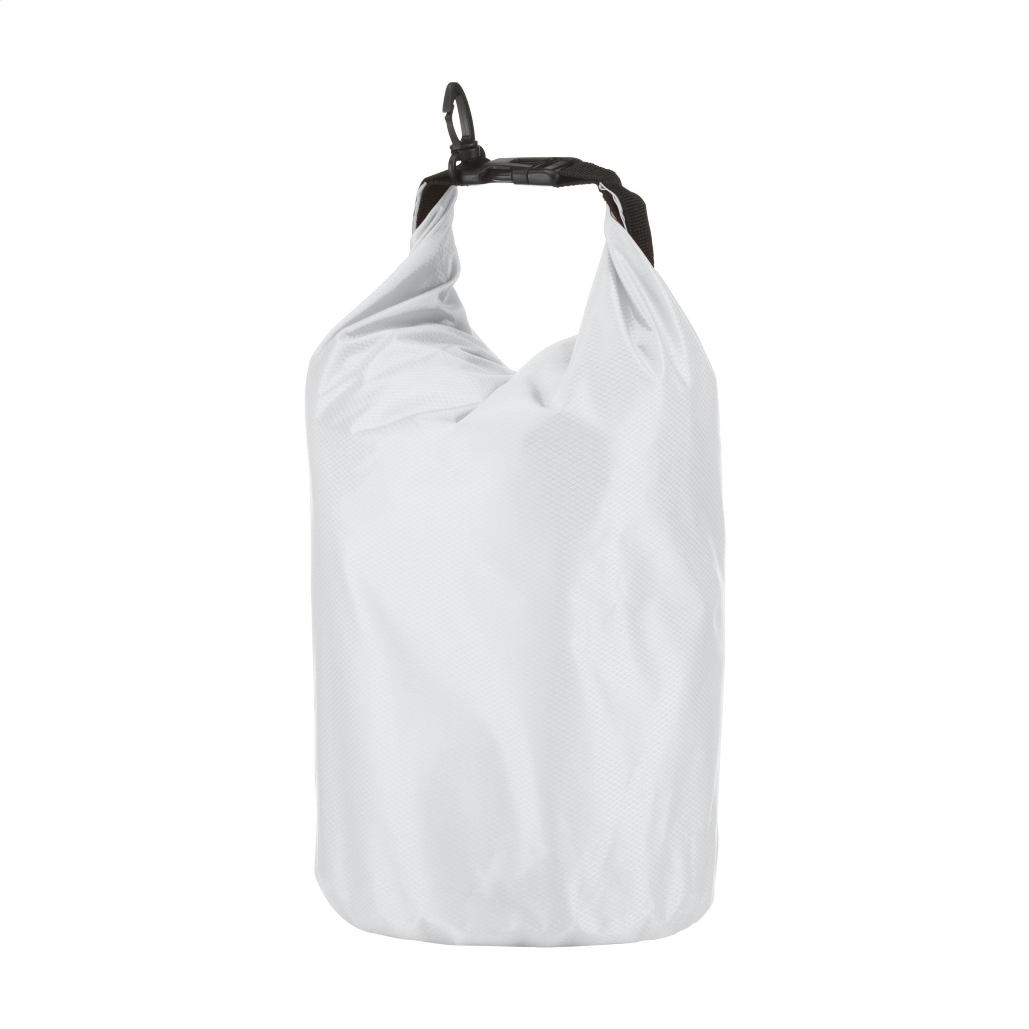 Прочная сумка из 210T ribstop полиэстера/ПВХ для сохранения личных вещей сухими. Сумка плавает на воде и устойчива к брызгам и струям воды, но ее не следует погружать в воду. С рулонным замком сверху, системой защелок и удобным карабином для легкого крепления к другому багажу или ремням. Вместимость около 5 литров.