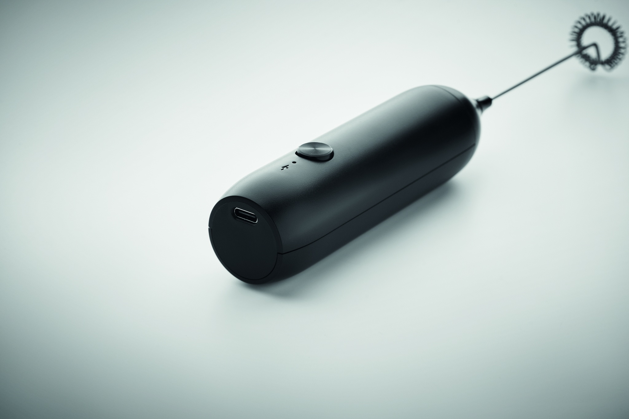 Ручной электрический вспениватель молока из пластика с матовым покрытием. Емкость встроенного аккумулятора 500 мАч. Возможность подзарядки от USB Type-C (кабель в комплекте). Скорость: 10 000 об/мин.