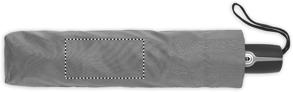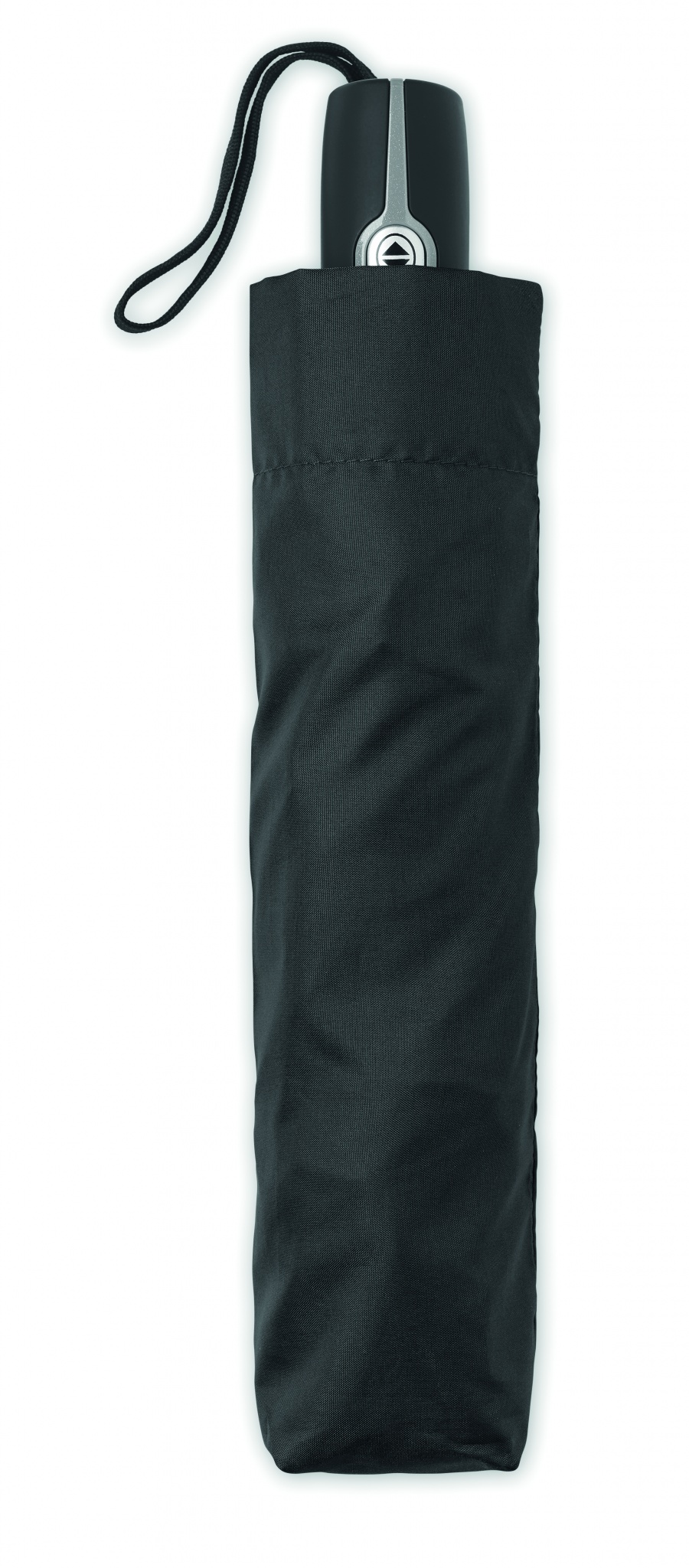 27-дюймовый ветроустойчивый зонт автомат в 3 сложения. Материал 190T эпонж, стальной стержень с черным покрытием. Спицы из стекловолокна. Черная полипропиленовая ручка с кнопкой. В комплекте с чехлом.