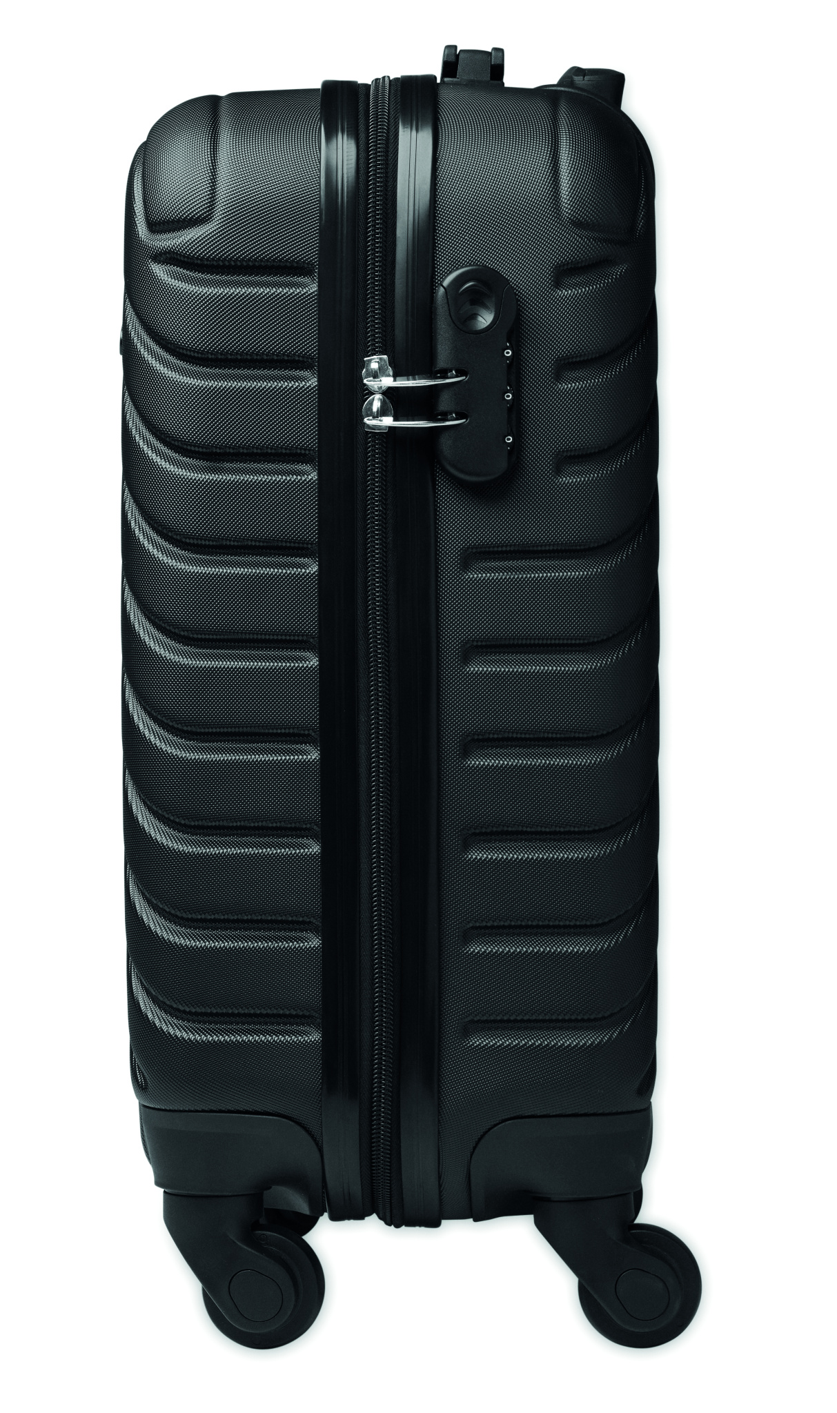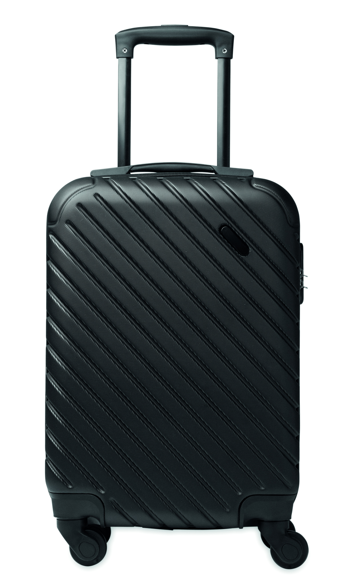 18 tums trolley med hårt skal i ABS. 1 huvudfack och ett innerfack. Inkluderar ett säkerhetslås. Går att köra på 4 hjul.