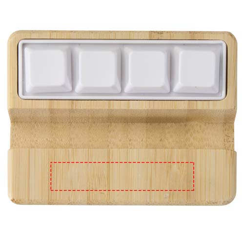Logotrade reklamprodukter bild: Algol telefonställ och fidget-leksak av återvunnen plast med detaljer i bambu