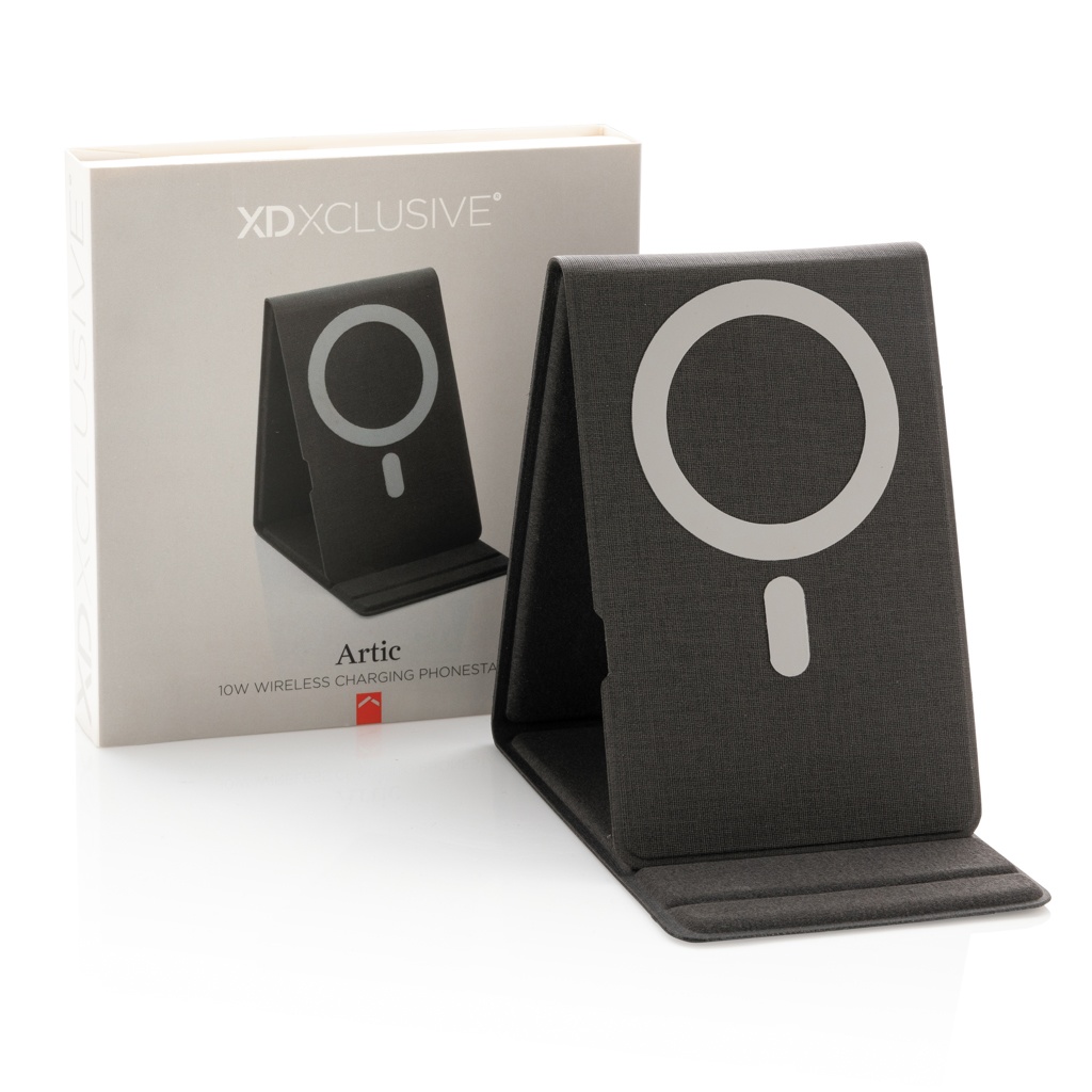 Logotrade presentreklam bild: Artic magnetiskt mobilställ, 10W trådlös laddning