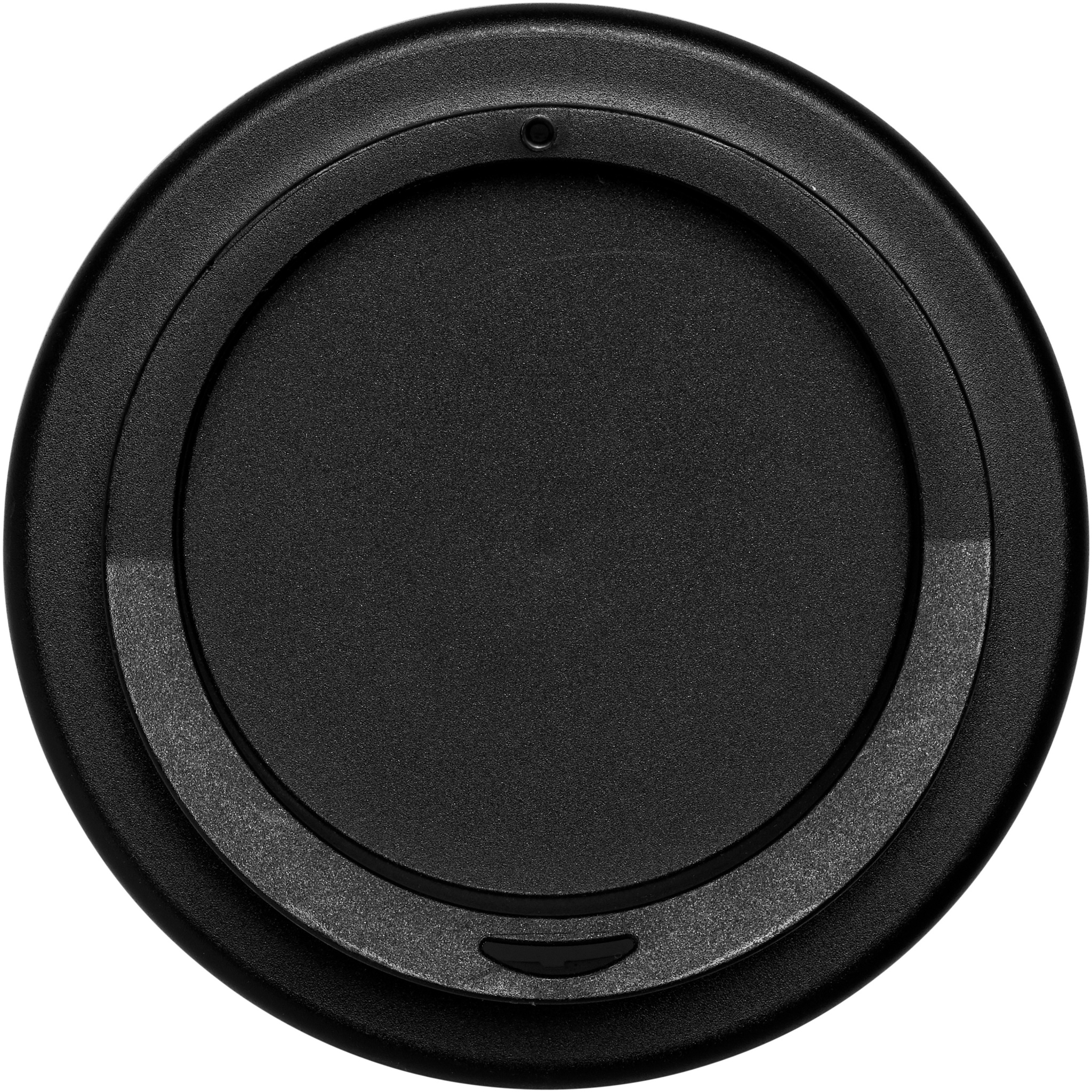 Termosmugg med dubbelvägg och skruvbart lock. Muggen har en fullfärgad omslutande design som är gjuten på produkten. Termosen är tillverkad av 95 % återvunnen plast och har en svart insida. Muggen är helt återvinningsbar och tål maskindisk och mikrovågsugn. Volymkapacitet: 250 ml. BPA-fri. Förpackad i en komposterbar påse. Tillverkad i Storbritannien.