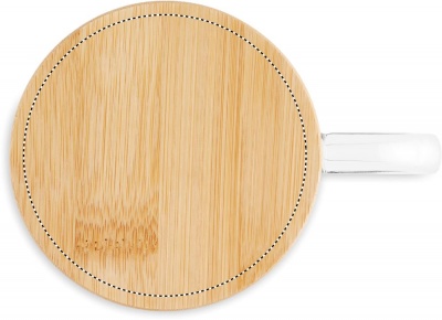 Dubbelväggig borosilikatmugg med stjärnor och bambulock. Kapacitet: 220 ml.