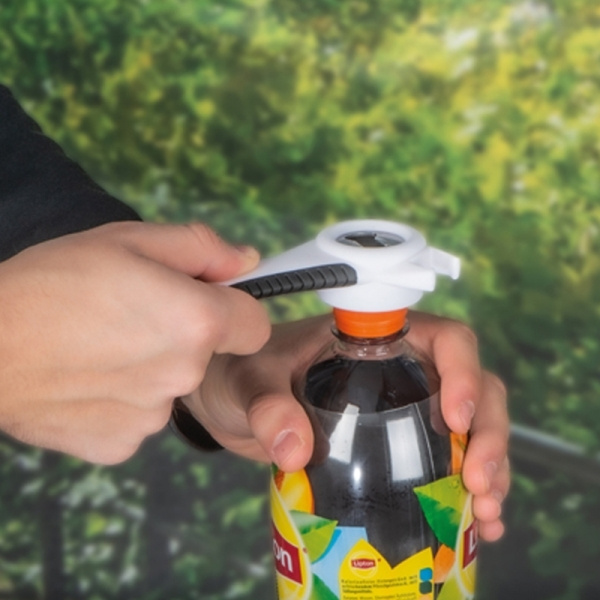 Den nästan allsidiga öppnaren förenklar öppningen av burkar, flaskor och burkar. Det gör livet lättare! Vi trycker din logotyp på den vita ytan.