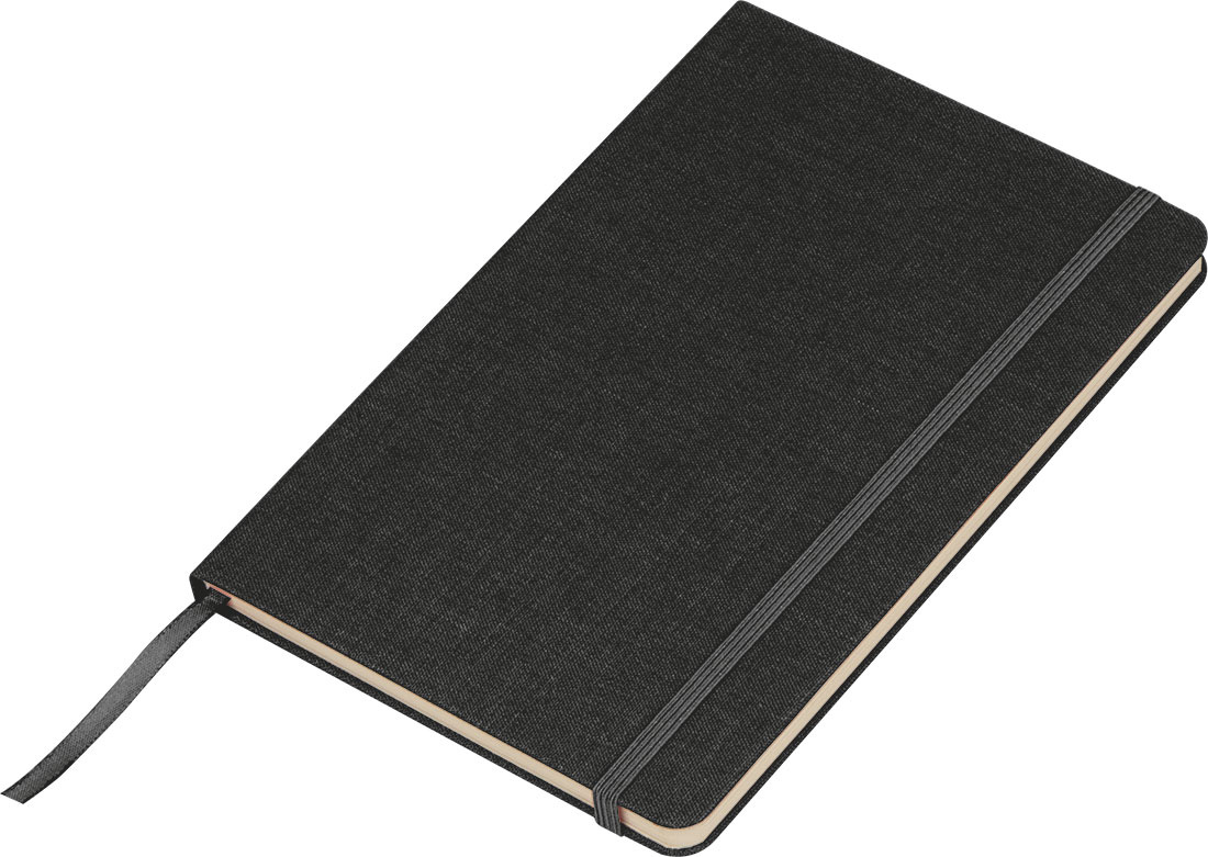 Hållbar A5-anteckningsbok med ett vävt omslag av återvunnet PET och 160 sidor sockerrörspapper. Den har också ett bokmärke och ett elastiskt stängningsband.