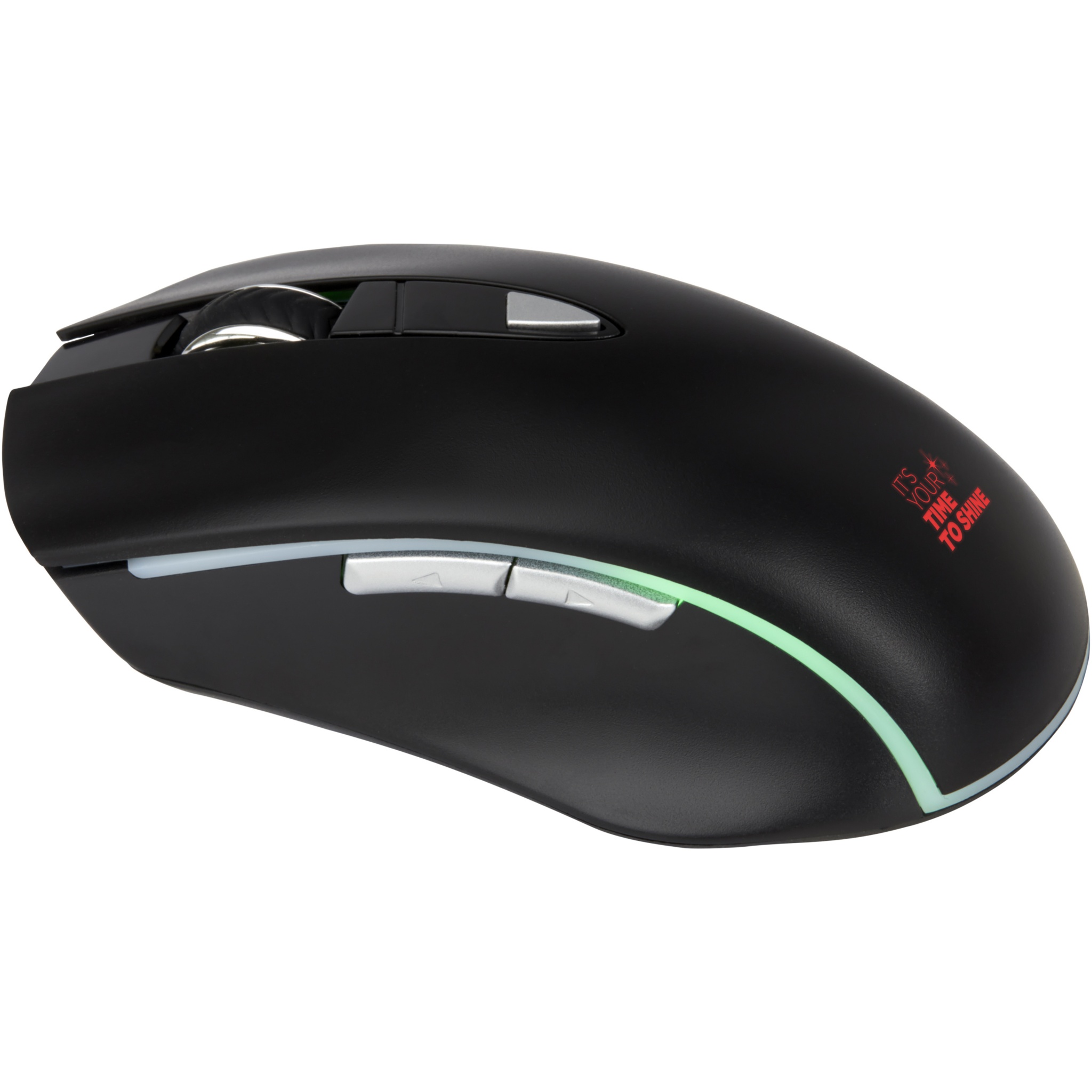 Ergonomisk trådlös mus som passar perfekt i handflatan. Bra handledsstöd för långa timmar av arbete eller spel. Musen har 3 DPI-inställningar (800/1200/1600) för alla känslighetskrav. Det inbyggda och uppladdningsbara litiumjonbatteriet på 400 mAh ger upp till 20 timmars användning med lysdioden på. Logotypen tänds och lyser när den är dekorerad med gravyr. LED-färgen ändras slumpmässigt.