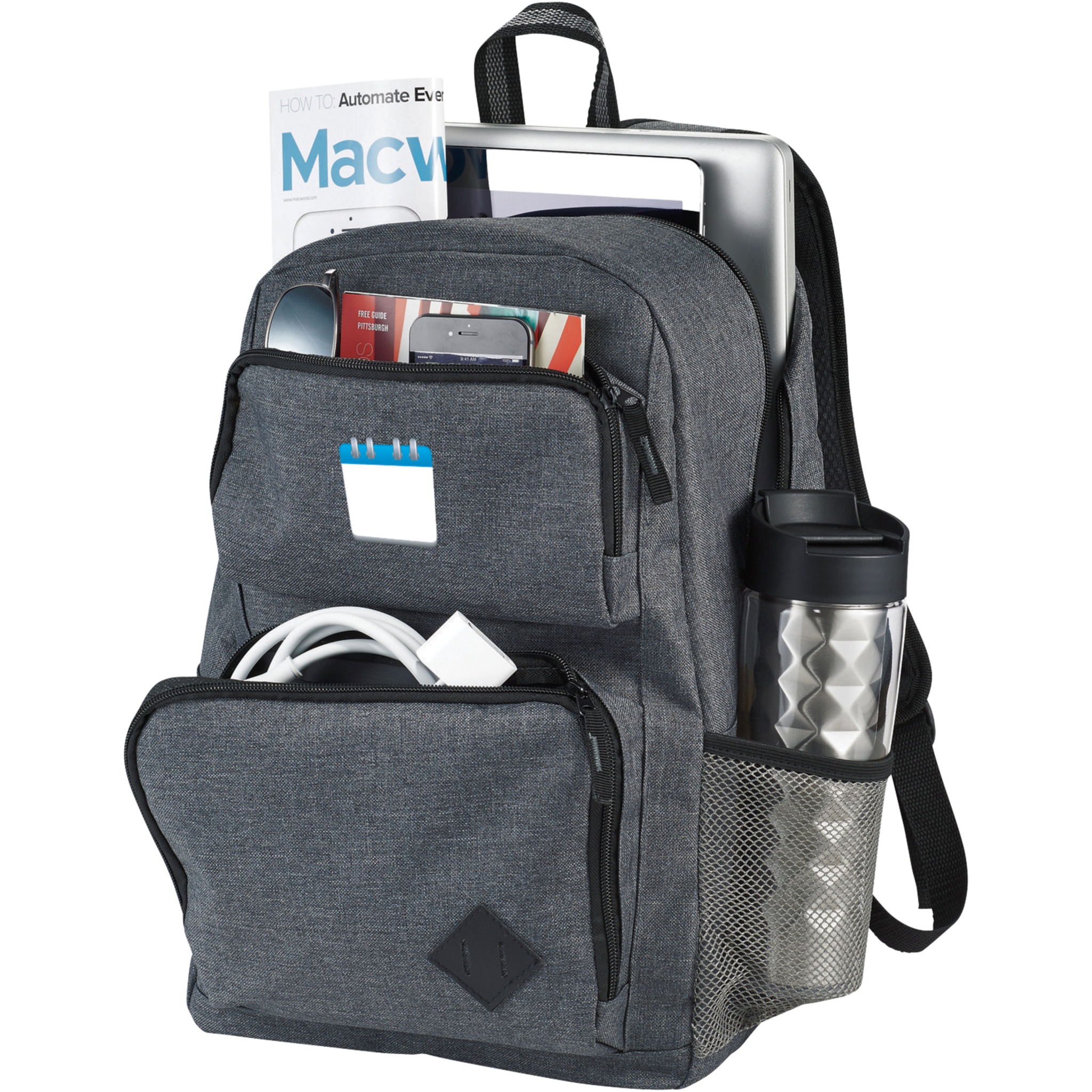 Blixtlåsförsett huvudfack med vadderad avdelning som passar upp till 15" datorer och separat plats för surfplatta. De två fickorna fram erbjuder flexibla tryckytor och rymmer ett extrabatteri, kablar och andra tillbehör. Sidficka med dragkedja för extra förvaring. Justerbara vadderade axelremmar och bärhandtag. Det kan finnas mindre variationer i färgen på den faktiska produkten på grund av tygfärgerna, vävar och utskriften.