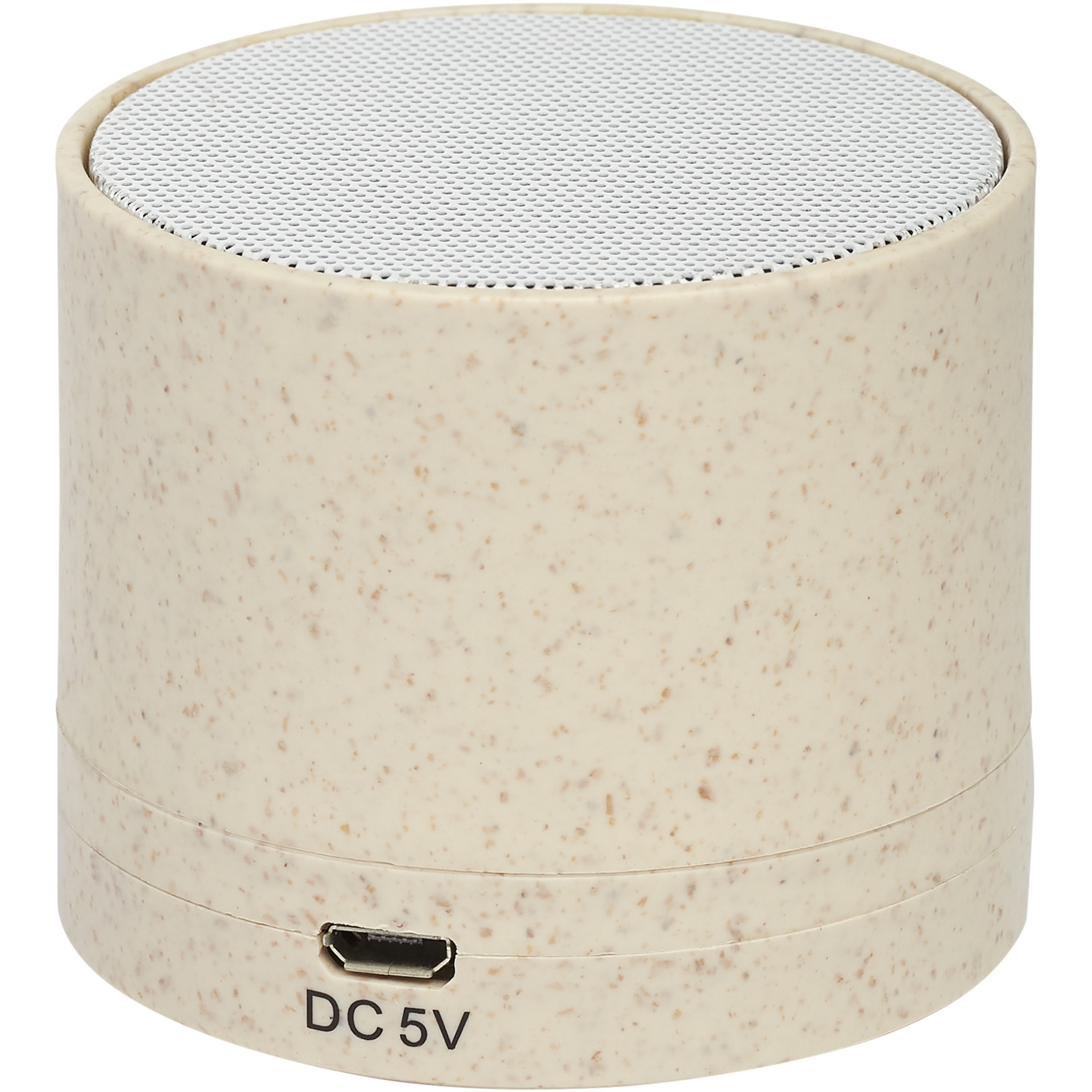 Bluetooth® högtalarfodral av halm och plastmaterial blandat, vilket minskar mängden plast som behövs. Högtalaren producerar kristallklart ljud under över 1,5 timmars uppspelningstid vid maximal volym med 3 W-utgång. Bluetooth® 5.0. Förpackad i en presentförpackning och levereras med en bruksanvisning (båda tillverkade av hållbart material) Micro-USB laddningskabel medföljer.