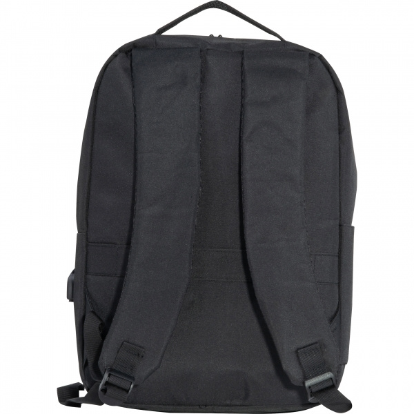 Laptopryggsäck tillverkad av polyester för 15-tums bärbara datorer. Den har två framfack med dragkedja, ett stort huvudfack med vaddering för laptopen, olika fickor, vadderade axelremmar, ett bärhandtag och en rem för att fästa på en trolley. Din logotyp är applicerad på framfacket.