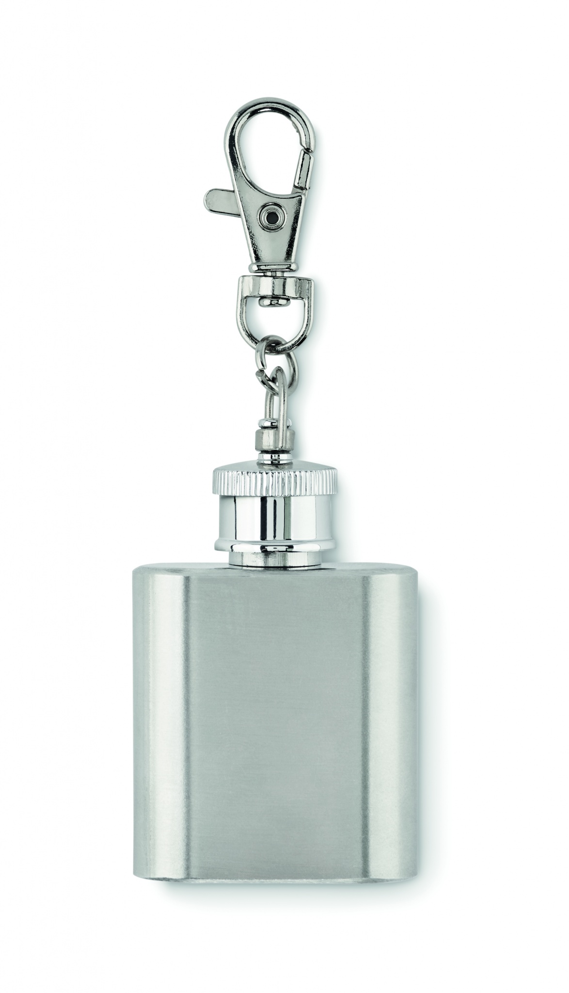 Nyckelring för hipflask i rostfritt stål. Kapacitet: 28 ml.