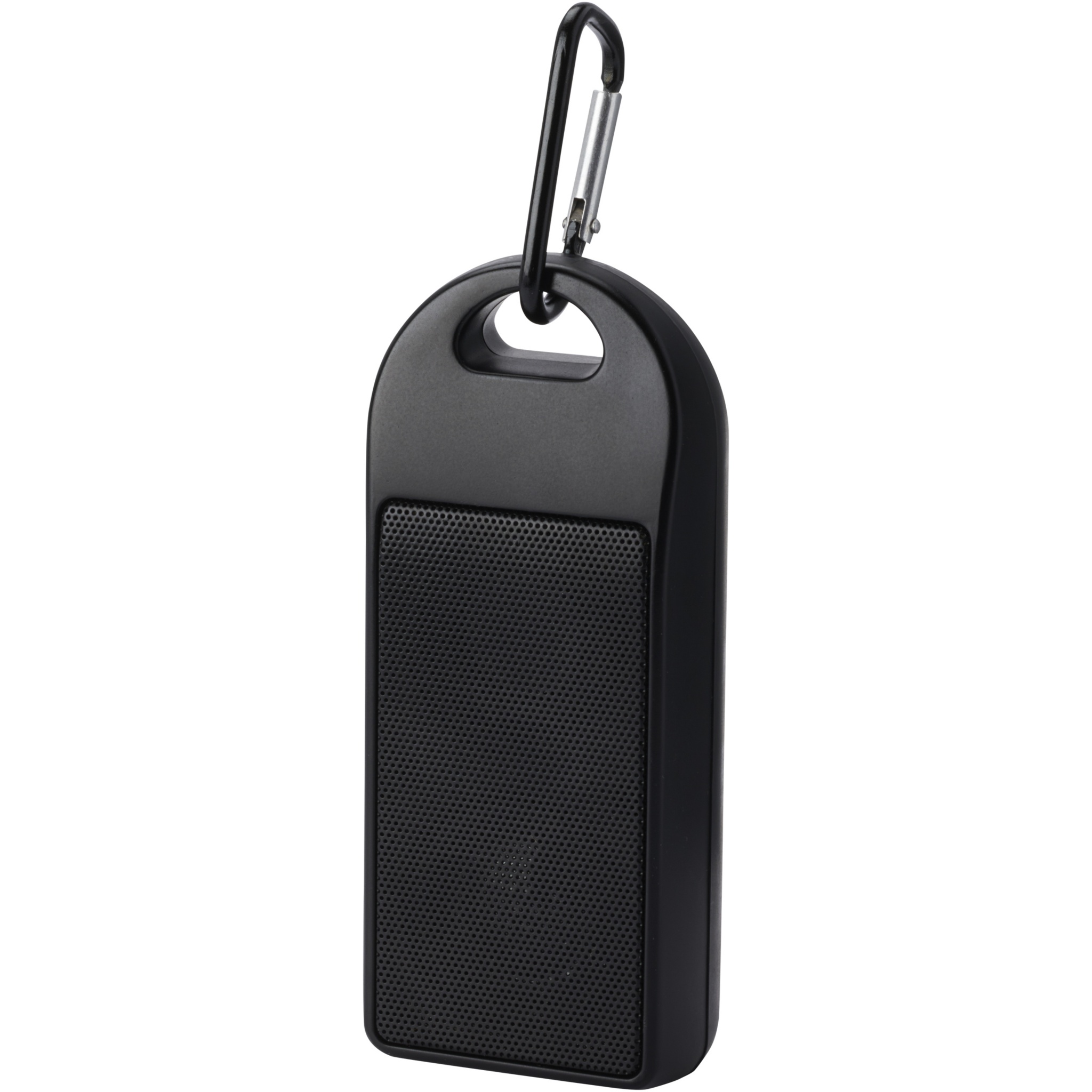 Bluetooth®-högtalare av återvunnen RCS på 3 W som spelar musik, podcasts osv. från vilken Bluetooth®-kompatibel enhet som helst, vilket gör den till en perfekt följeslagare för alla tillfällen. Tack vare den medföljande karbinhaken kan högtalaren enkelt fästas på en ryggsäck, och IPX4-klassningen skyddar den mot enklare regn. Njut av upp till 1,5 timmars musik på högsta volym tack vare dess 300 mAh litiumjonbatteri. Laddningstiden är cirka 1,5 timmar. Bluetooth® 5.0 med en räckvidd på cirka tio meter. Levereras med en användarhandbok, en karbinhake, en 50 cm lång USB-A till Type-C-laddningskabel och förpackad i en låda av 100 % återvunnet kraftpapper.