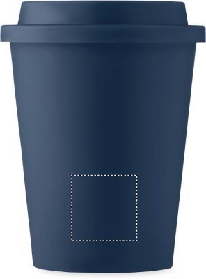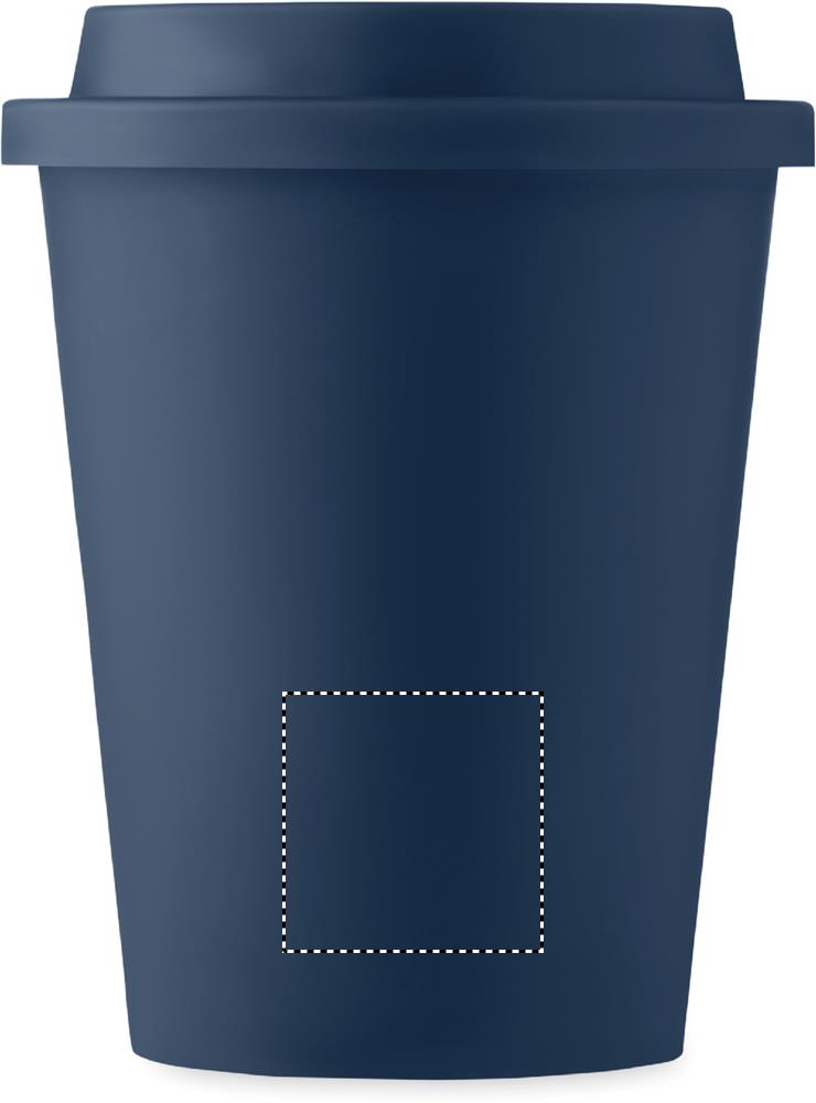 Dubbelväggig mugg med lock i PP. Kapacitet: 300 ml.