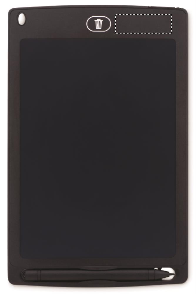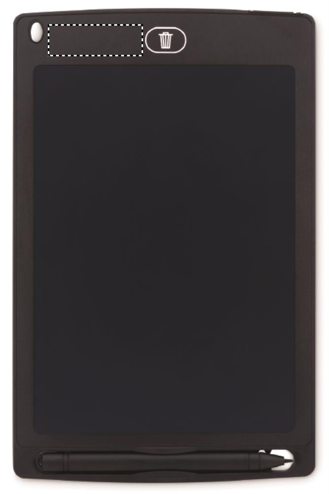 LCD-skrivplatta 8,5 tum med pekpenna. Genom att trycka på knappen kan du radera ditt meddelande eller teckning. Den är liten och nätt, enkel att bära med sig överallt. Drivs av ett knappcells CR2020 batteri som ingår.