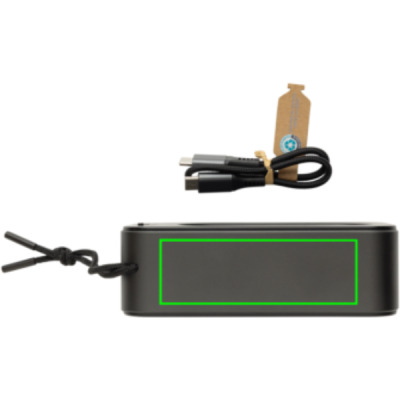 Swiss Peak RCS Recycled Aluminum 10W-högtalare levererar kraftfullt ljud av hög kvalitet med djup, resonant bas tack vare den integrerade subwoofern och dubbla 5W-högtalare. Den är utformad för exceptionell ljudprestanda och har BT 5.3 för smidig anslutning och automatisk parkoppling, vilket garanterar enkel installation med dina enheter. Med ett 1200 mAh polymer-Li-jonbatteri ger högtalaren upp till 5 timmars speltid vid 50 % volym och laddas fullt på bara 2,5 timmar via den medföljande USB-C till USB-C-kabeln. Ytterligare funktioner inkluderar en USB-C-port och en AUX-port. Högtalaren är tillverkad av RCS-certifierat återvunnet aluminium. RCS (Recycled Claim Standard) är en standard för att verifiera återvunnet innehåll i en produkt genom hela leveranskedjan. Totalt återvunnet innehåll: 40 % baserat på produktens totala vikt. Denna högtalare är PVC-fri och förpackad i en FSC-certifierad presentförpackning. Med bärrem tillverkad av RPET.