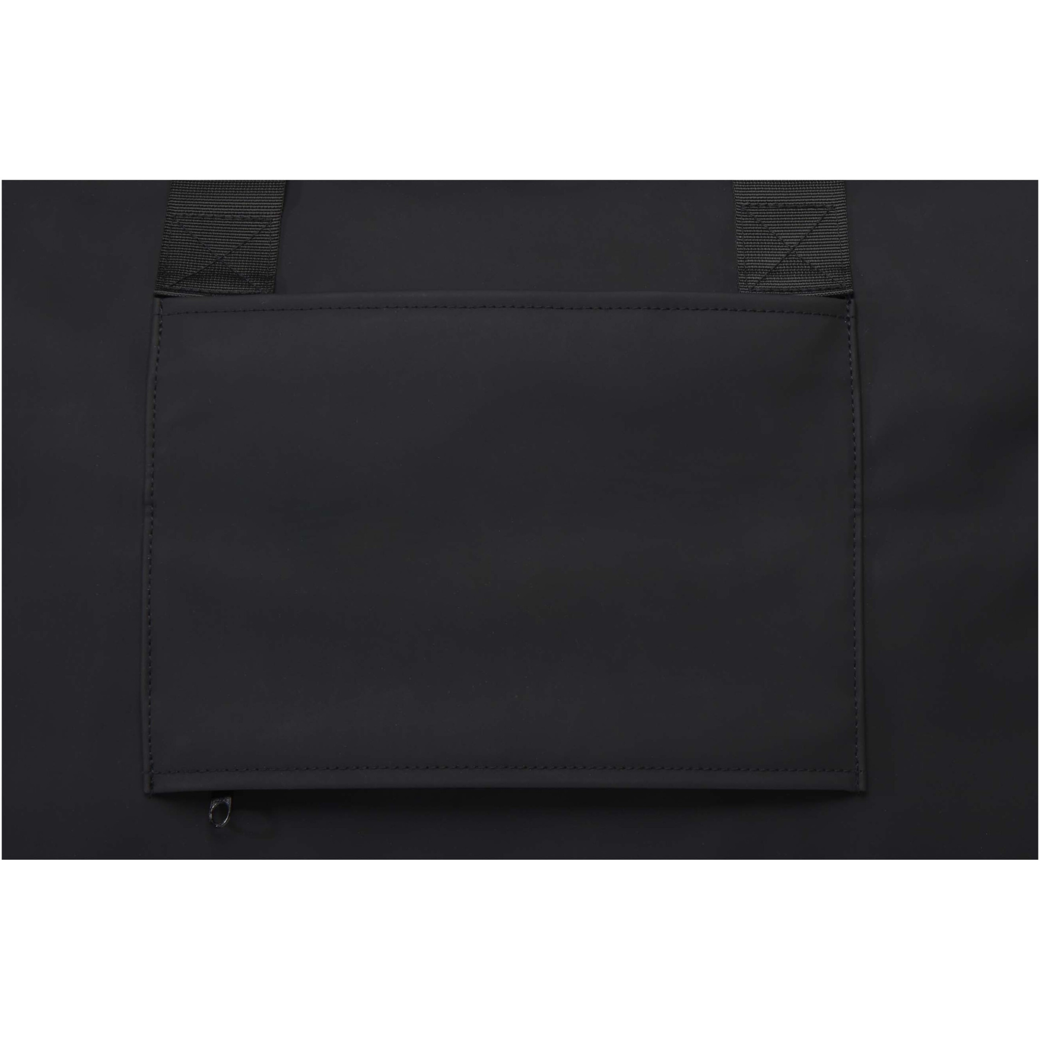 Duffelväskan Turner är tillverkad av 51 % GRS-certifierad återvunnen plast och fodret är tillverkat av 100 % GRS-certifierad RPET. Duffelväskan har ett vadderat fack för 15,6 tums laptop, ett band på insidan för förvaring av en vattenflaska och en ficka med dragkedja för mindre saker. Dessutom finns en bagagerem på baksidan som gör det enkelt att fästa den på en bagageväska med hjul, vilket gör den till en bekväm partner på resor. Duffeln kan bäras i de två korta handtagen eller i den expanderbara och avtagbara axelremmen som går att justera för maximal komfort. Volymkapacitet: 36 liter.