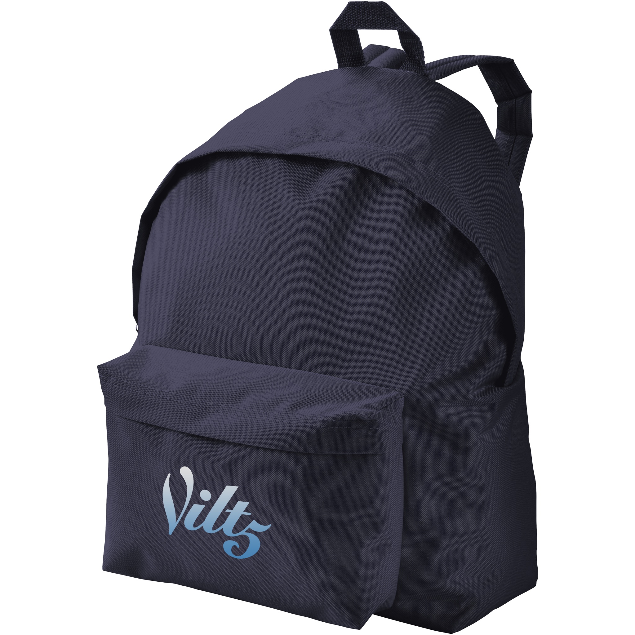 Klassisk ryggsäck med regnskyddat huvudfack, dold blixtlåsficka framtill Justerbara vadderade axelremmar och vadderad rygg för extra komfort. Förstärkt bärhandtag upptill.