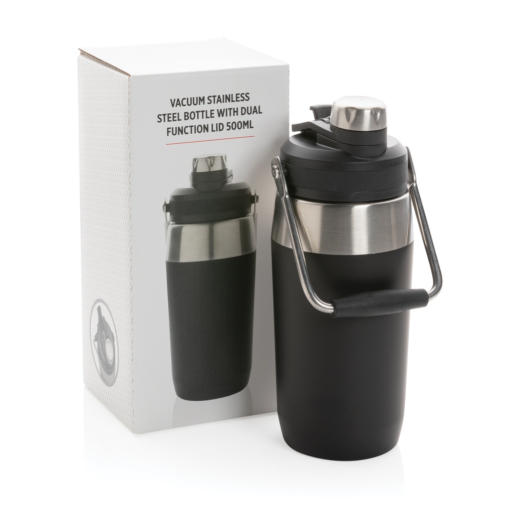 Vakuumflaska i S/S, lock med dubbelfunktion, 500ml, svart