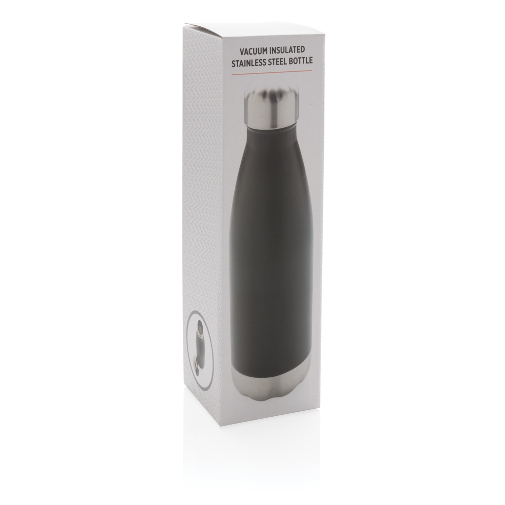 Höj ditt dagliga vattenintag med denna vakuumisolerade flaska i stainless steel. Håller din dryck varm i upp till 5tim eller kyld upp till 15tim. Denna eleganta flaska passar i de flesta mugghållare och hjälper dig att hålla vätskenivån under kontroll. Volym: 500ml.