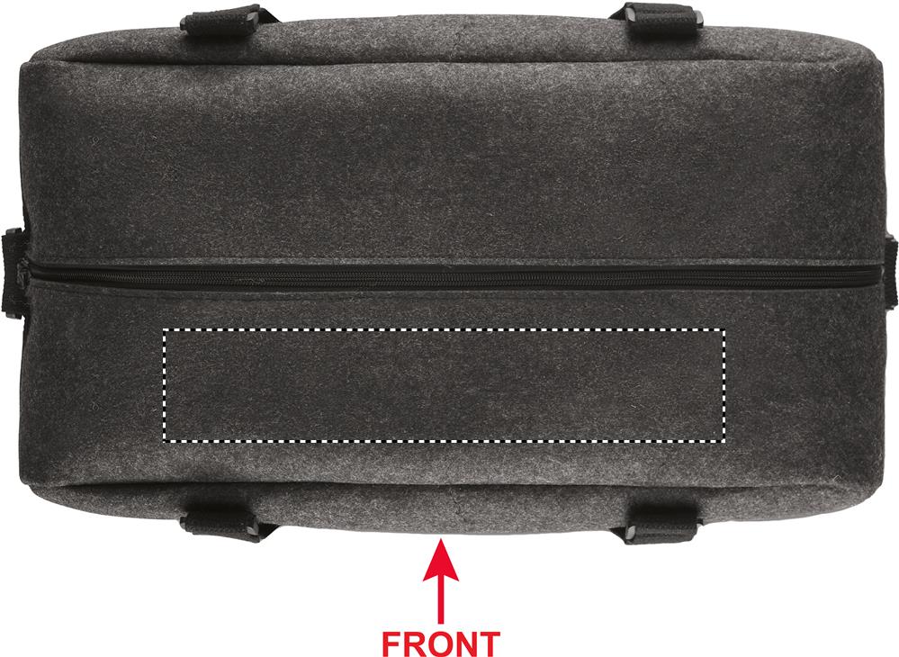 Weekend- eller träningsväska i RPET-filtväska för med dragkedja på framsidan, handtag av canvas och avtagbar justerbar axelrem.