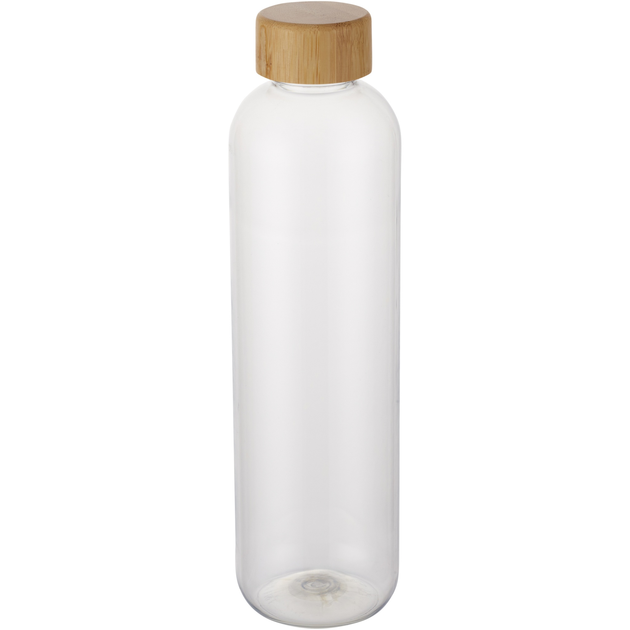 Vattenflaska tillverkad av återvunnen plast, med ett snyggt lock av bambu. Flaskan har enkelvägg, är BPA-fri, testad och godkänd enligt tysk lagstiftning om livsmedelssäkerhet (LFGB). Testad och godkänd för ftalat-innehåll enligt REACH-förordningen. Bambun kommer från hållbara, miljömässigt och socialt ansvarsfulla källor. Volymkapacitet 950 ml. Handdisk rekommenderas. Levereras i en presentförpackning av återvunnen kartong.