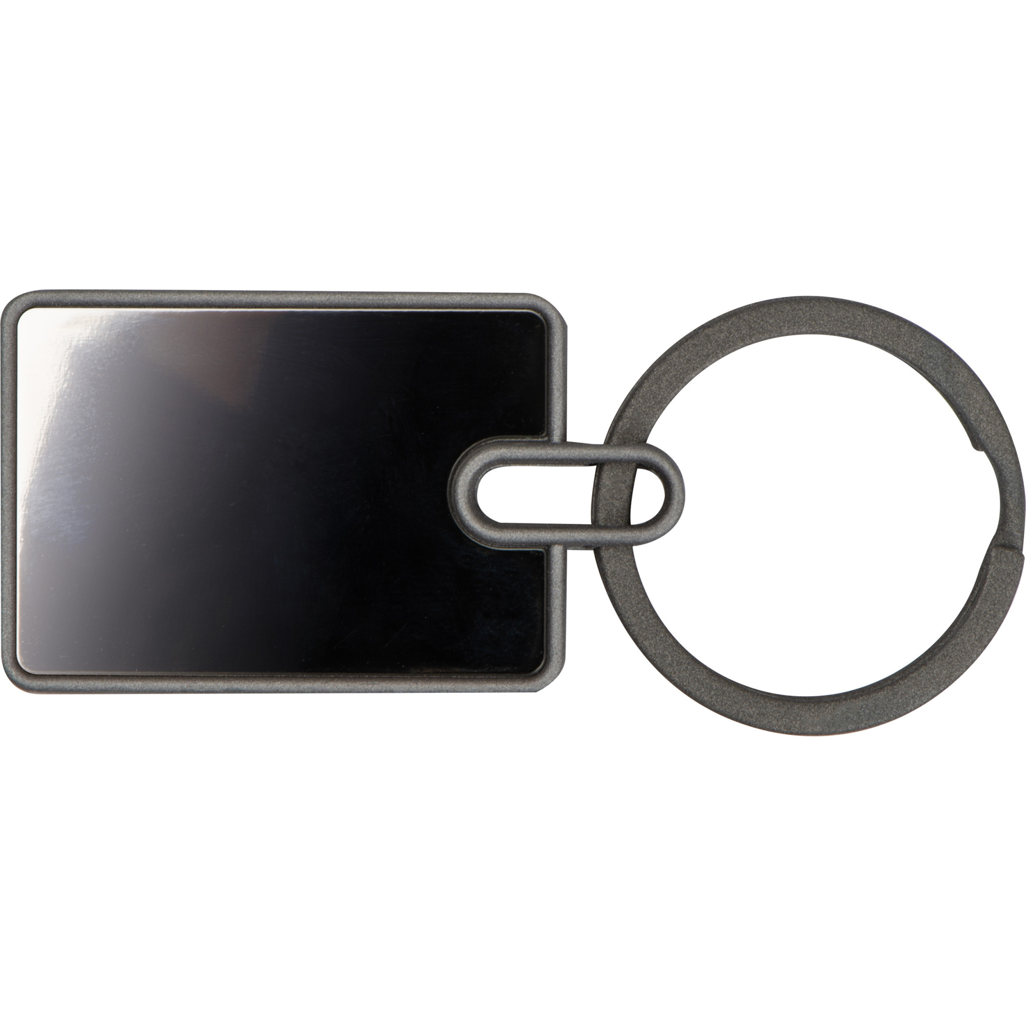 Högkvalitativ nyckelring tillverkad av rostfritt stål. Dess unika utseende uppnås genom den spegelvända mörka mitten, den matta bården och den matta nyckelringen.
